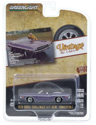 1:64 GreenLight *VINTAGE AD CARS 3* Purple 1970 Dodge Challenger R/T HEMI *NIP*