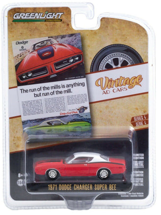 1:64 GreenLight *VINTAGE AD CARS 3* Red 1971 Dodge Charger Super Bee *NIP*