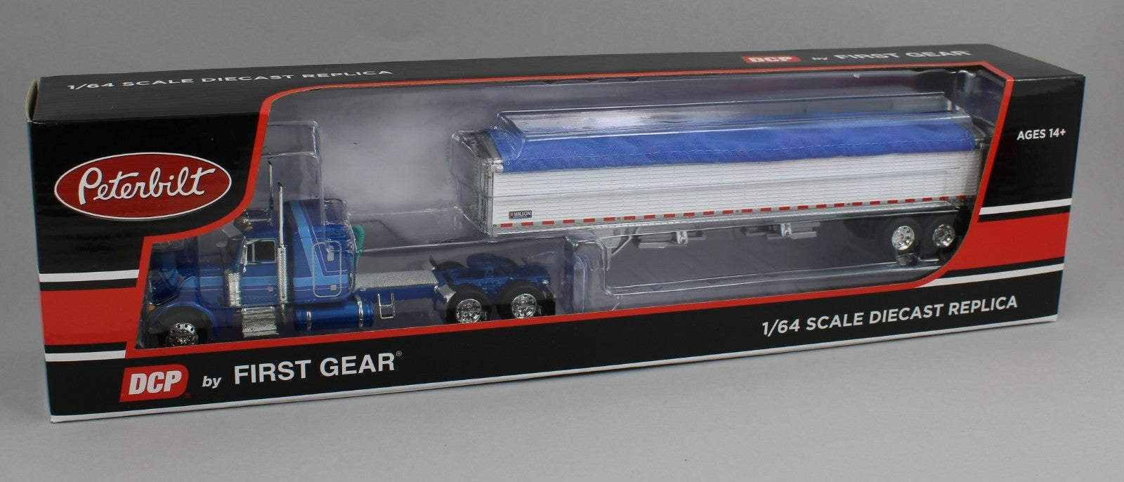 1:64 DCP *BLUE* Peterbilt 379 48" Flattop & Wilson Grain Trailer NIB