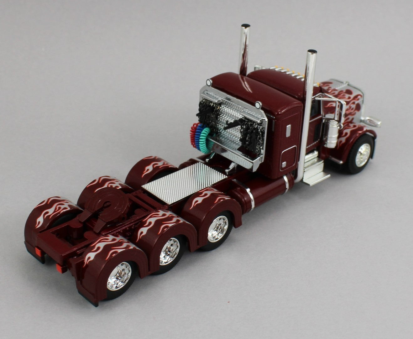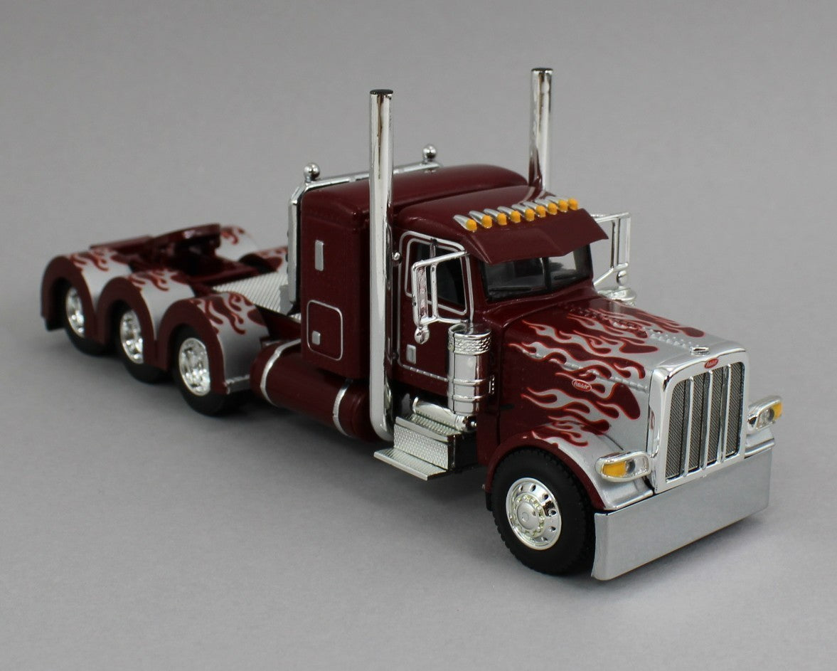DCP 1:64 *RED & SILVER* Peterbilt 389 36" Flattop HEAVY HAUL Lowboy Jeep Stinger