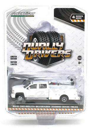 1:64 GreenLight DUALLY DRIVERS 4 White 2016 Silverado Service Truck w/CRANE NIP