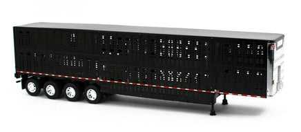 Peterbilt 389 63" Flattop Semi Truck with Black Quad-Axle Wilson Silverstar Livestock Trailer