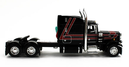 DCP 1:64 *BLACK & RED* Peterbilt 359 63" Mid-roof & Utility ROLL TARP TRAILER
