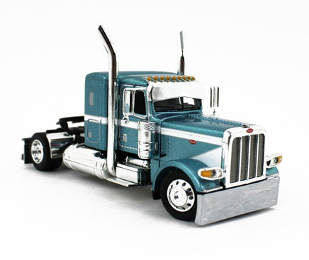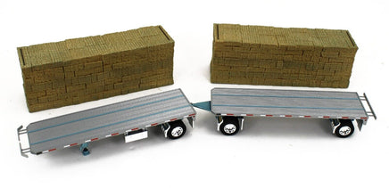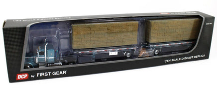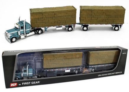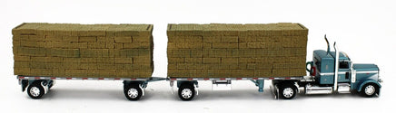DCP 1:64 *BLUE* Peterbilt 389 w/Utility Dual 28½’ Hay Flatbed Trailers & Load