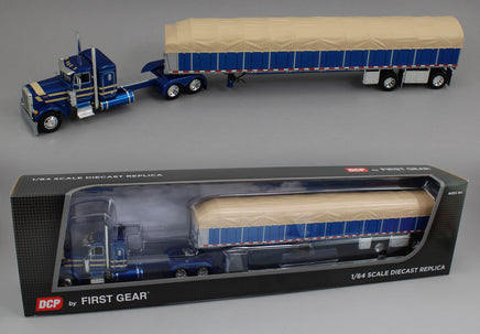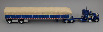 DCP 1:64 *BLUE & TAN* Peterbilt 379 36" Flattop w/Wilson COVERED WAGON Flatbed