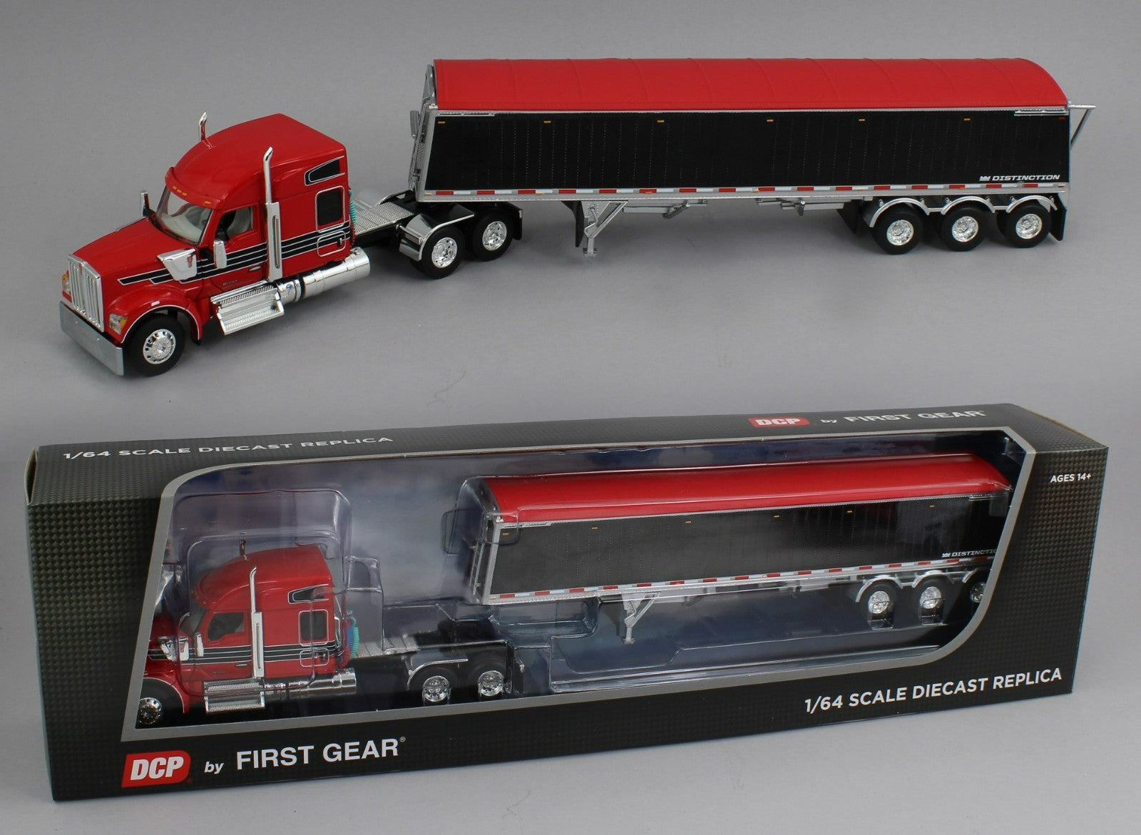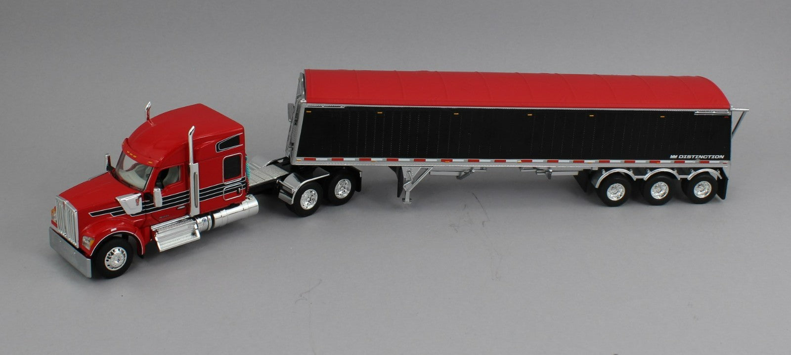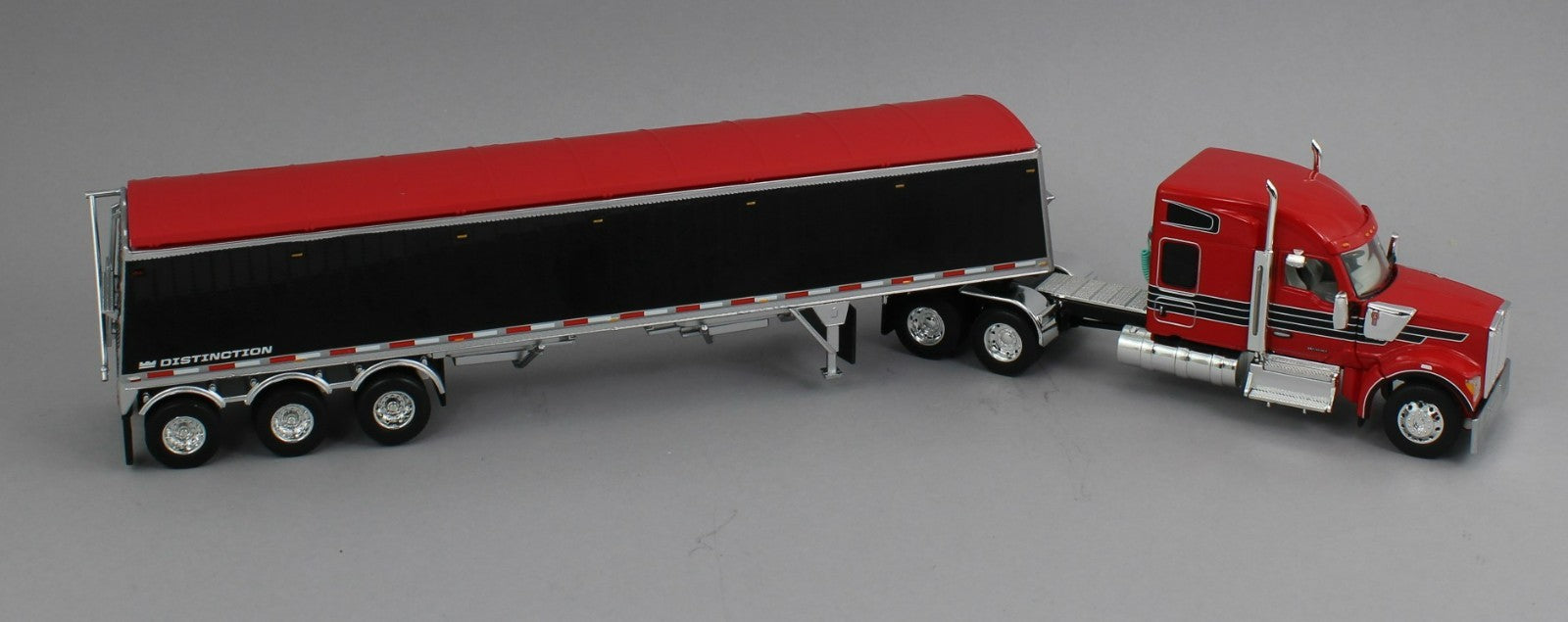DCP 1:64 *RED* Kenworth W990 76" Mid-Roof w/LODE KING Distinction Grain Trailer