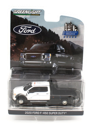 1:64 GreenLight *2020 FORD F-450 SUPER DUTY DUALLY* White Crew Cab FLATBED