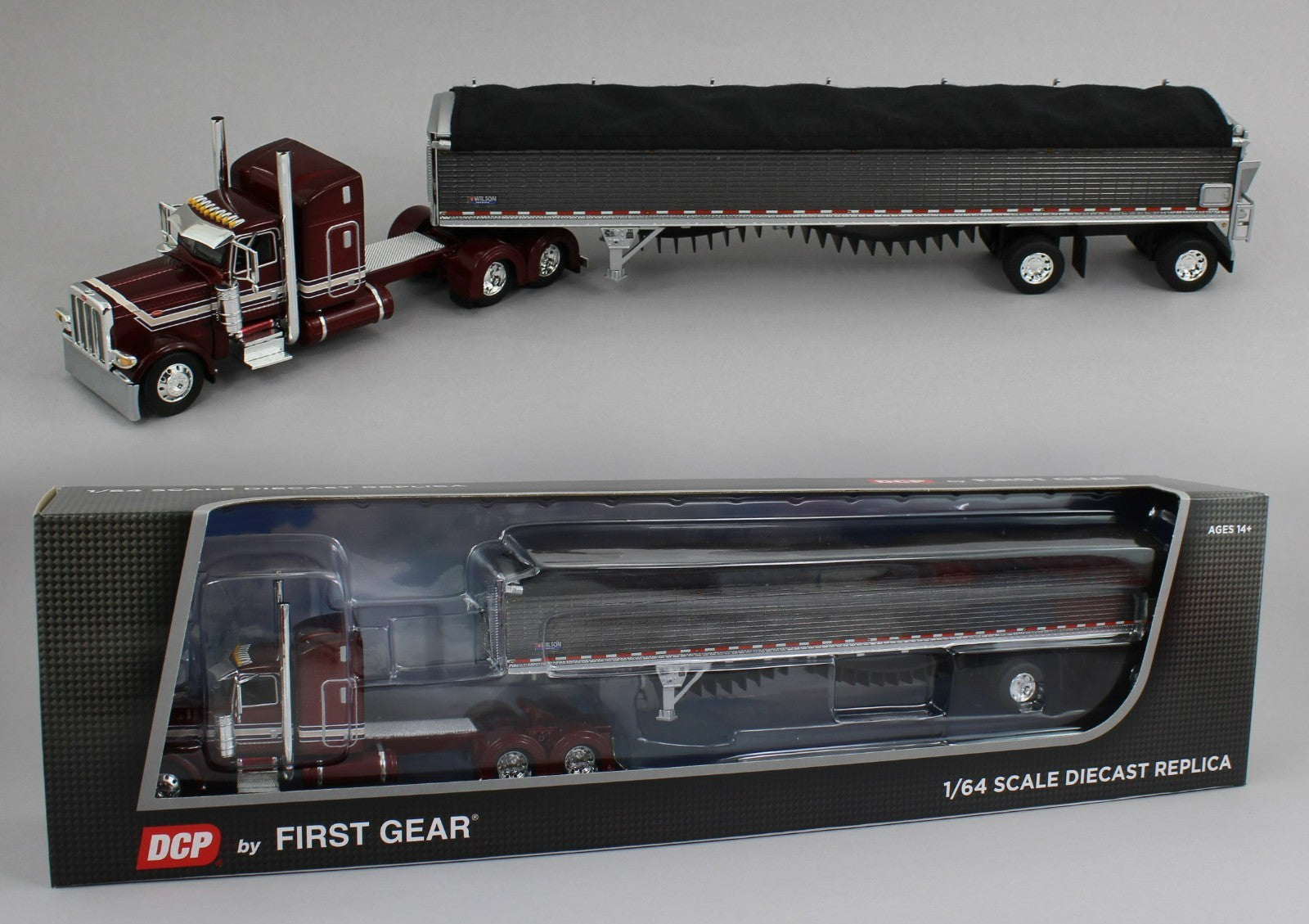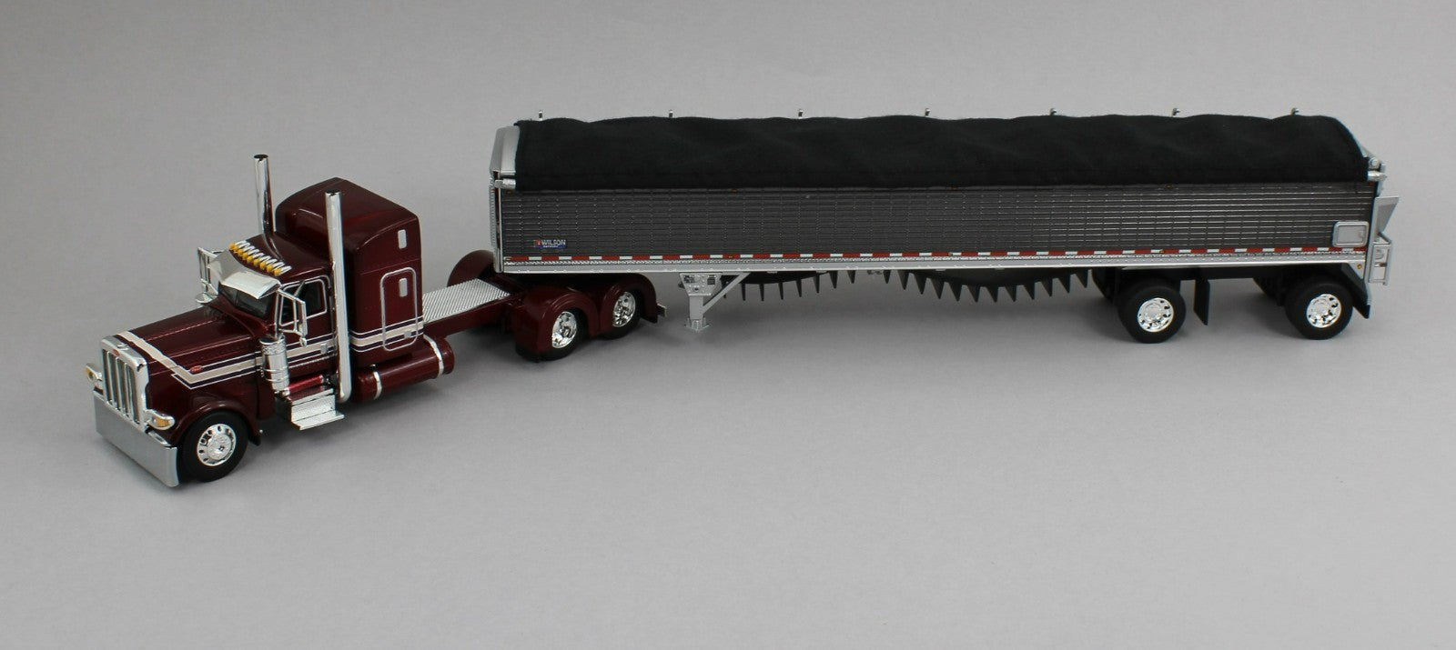 1:64 DCP *DARK RED* Peterbilt 389 48" Midroof & Wilson Belt Grain Trailer NIB