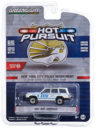 1:64 GreenLight *HOT PURSUIT 38* 1987 Jeep Cherokee NYPD Police Car NIP
