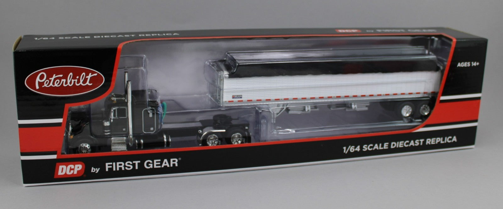 1:64 DCP *BLACK* Peterbilt 379 48" Flattop & Wilson Grain Trailer NIB