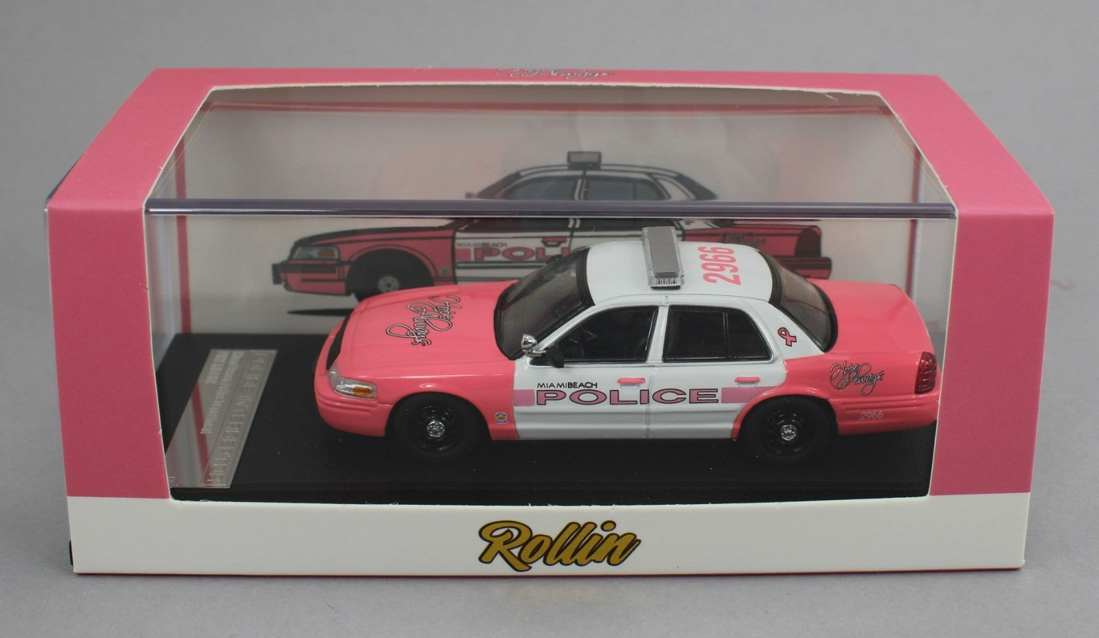 1:64 *ROLLIN DIECAST* Miami Beach PINK FORD CROWN VICTORIA Police Car NIB