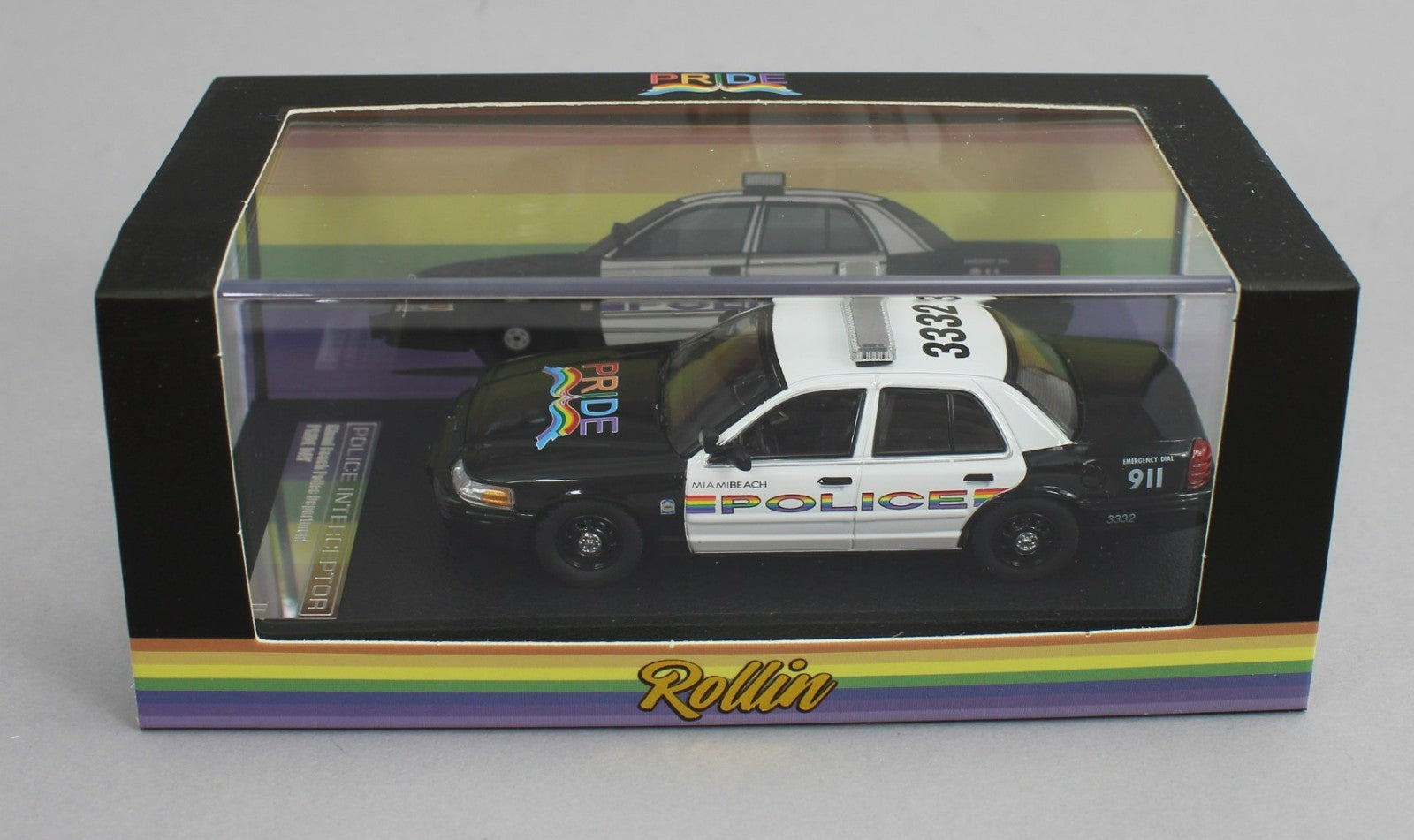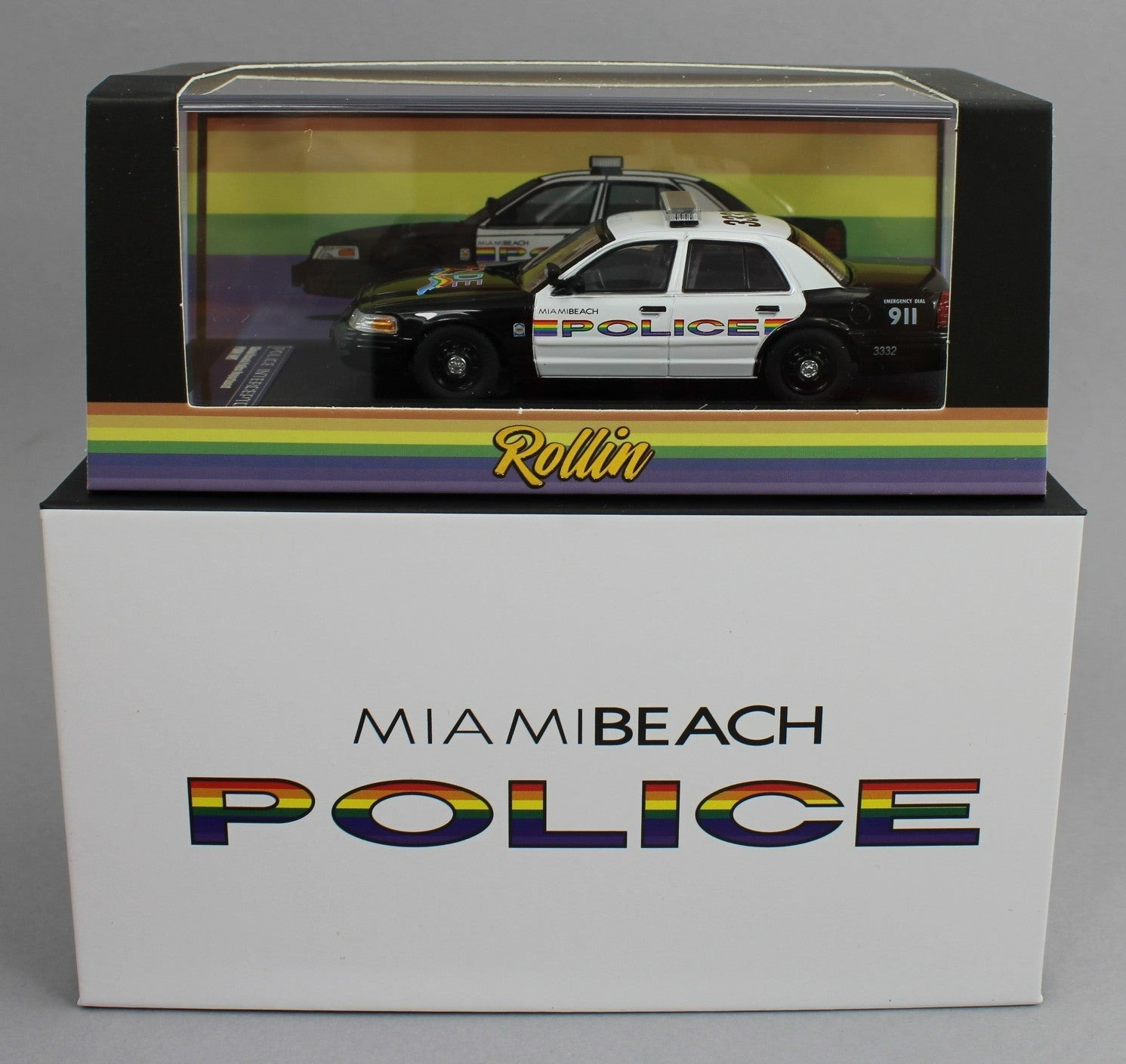 1:64 *ROLLIN DIECAST* Miami Beach *PRIDE* FORD CROWN VICTORIA Police Car NIB