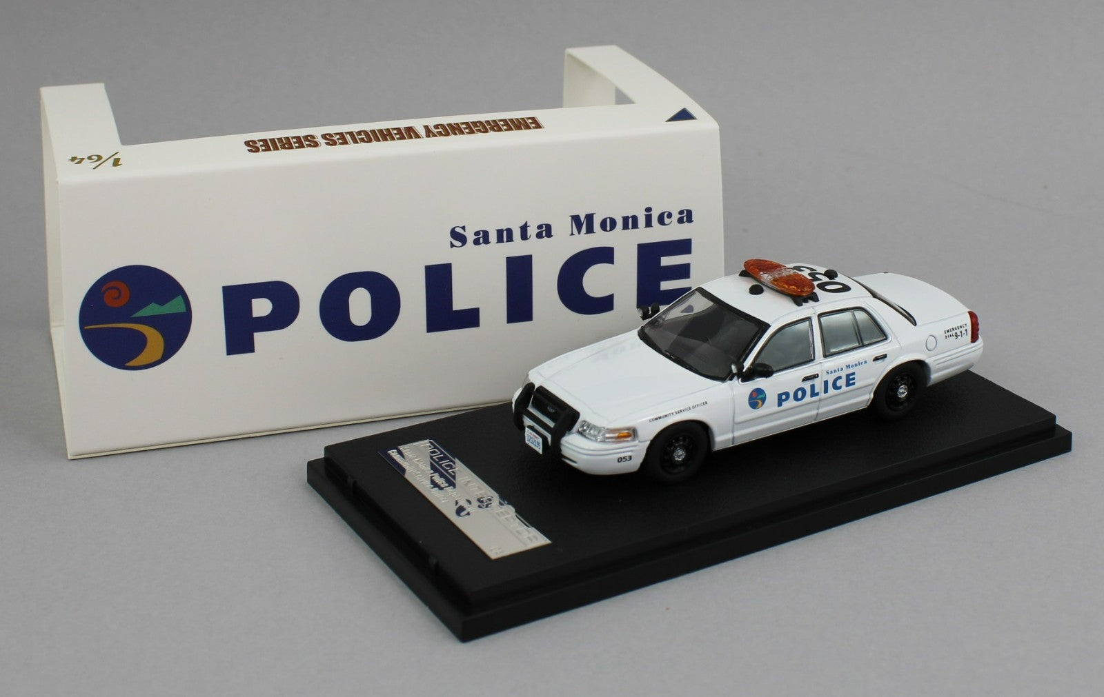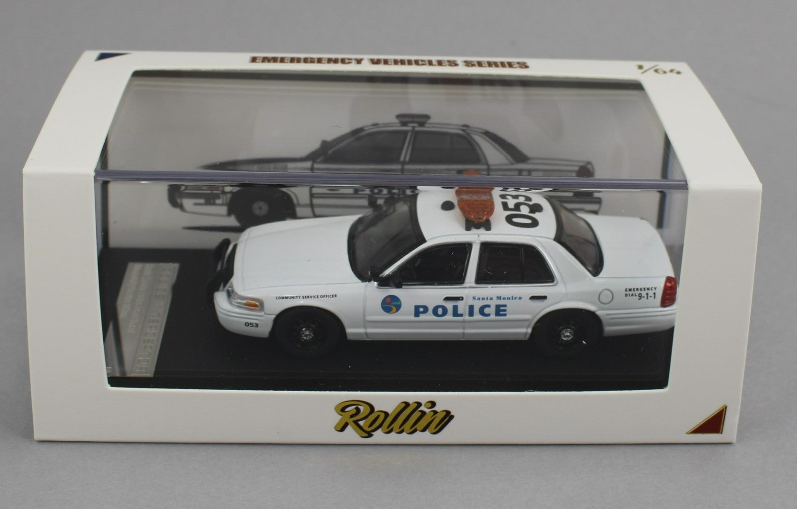 1:64 *ROLLIN DIECAST* WHITE Santa Monica FORD CROWN VICTORIA Police Car *NIB*