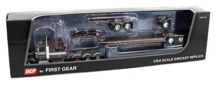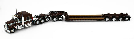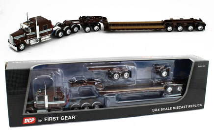 2023 DCP 1:64 *BROWN* Tri-Axle Kenworth W900L Aero Flattop w/LOWBOY & JEEP NIB