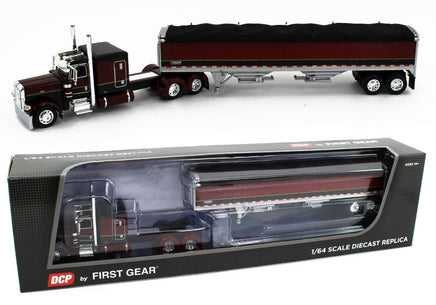 2023 DCP 1:64 *DARK RED BLACK* Peterbilt 389 63" Flattop w/WILSON GRAIN TRAILER