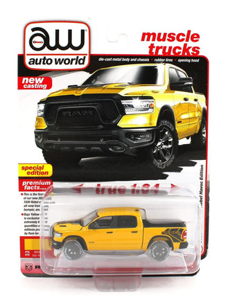 2024 AUTO WORLD 1:64 PREMIUM 4A *BAJA YELLOW* 2023 RAM 1500 Rebel Lunar *NIP*