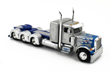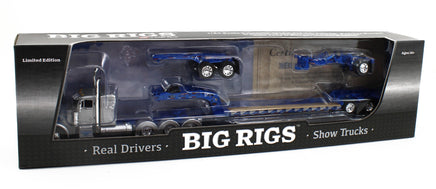 Silver & Blue Tri-Axle Peterbilt 379 Flattop with Heavy Haul Lowboy Trailer, including Jeep & Stinger!