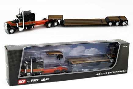 DCP 1:64 *BLACK & ORANGE* Stretched Peterbilt 389 70" Midroof w/Renegade Lowboy