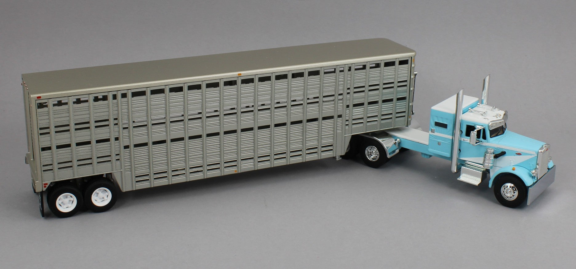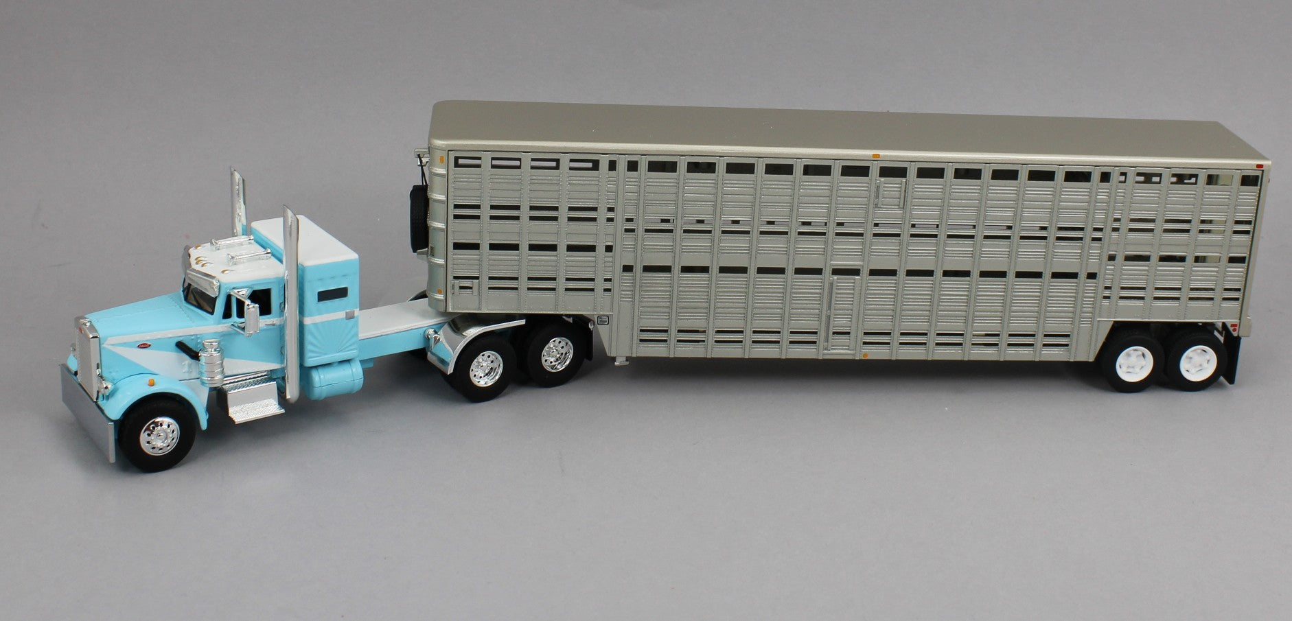 DCP 1:64 *BLUE* Peterbilt 351 Mercury Sleeper & Vintage Wilson Livestock Trailer