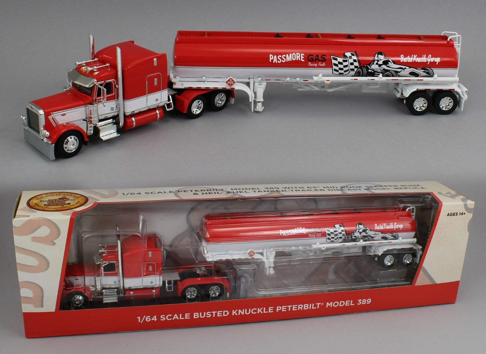 DCP 1:64 *BUSTED KNUCKLE GARAGE* Peterbilt 389 63" Midroof w/HEIL FUEL TANKER