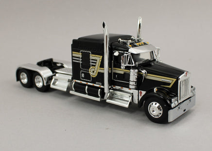 DCP 1:64 *BLACK* Kenworth 100th W900L 72" Aero Flattop w/Transcraft Stepdeck Trailer