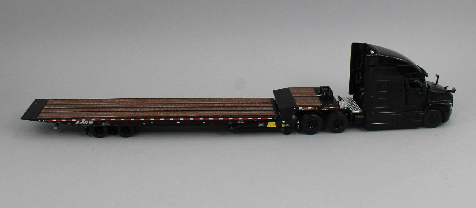 Black Mack Anthem Sleeper w/Black Landoll 440B-50CA Traveling Axle Flatbed Trailer & Red B61 Day Cab Load.