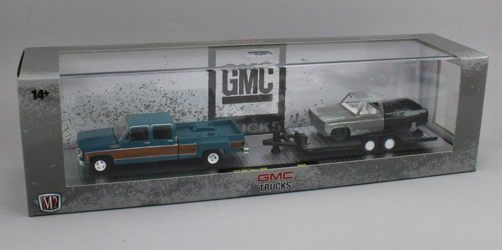 M2 MACHINES 1:64 *AUTO HAULERS 92* 1973 GMC Dually w/'73 Cheyenne & Trailer NIB